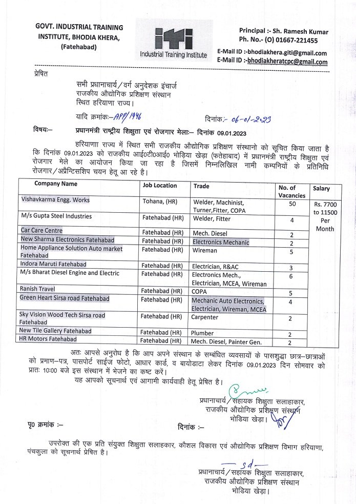 राजकीय औद्योगिक प्रशिक्षण संस्थान, भोड़िया खेड़ा (फतेहबाद), हरियाणा
